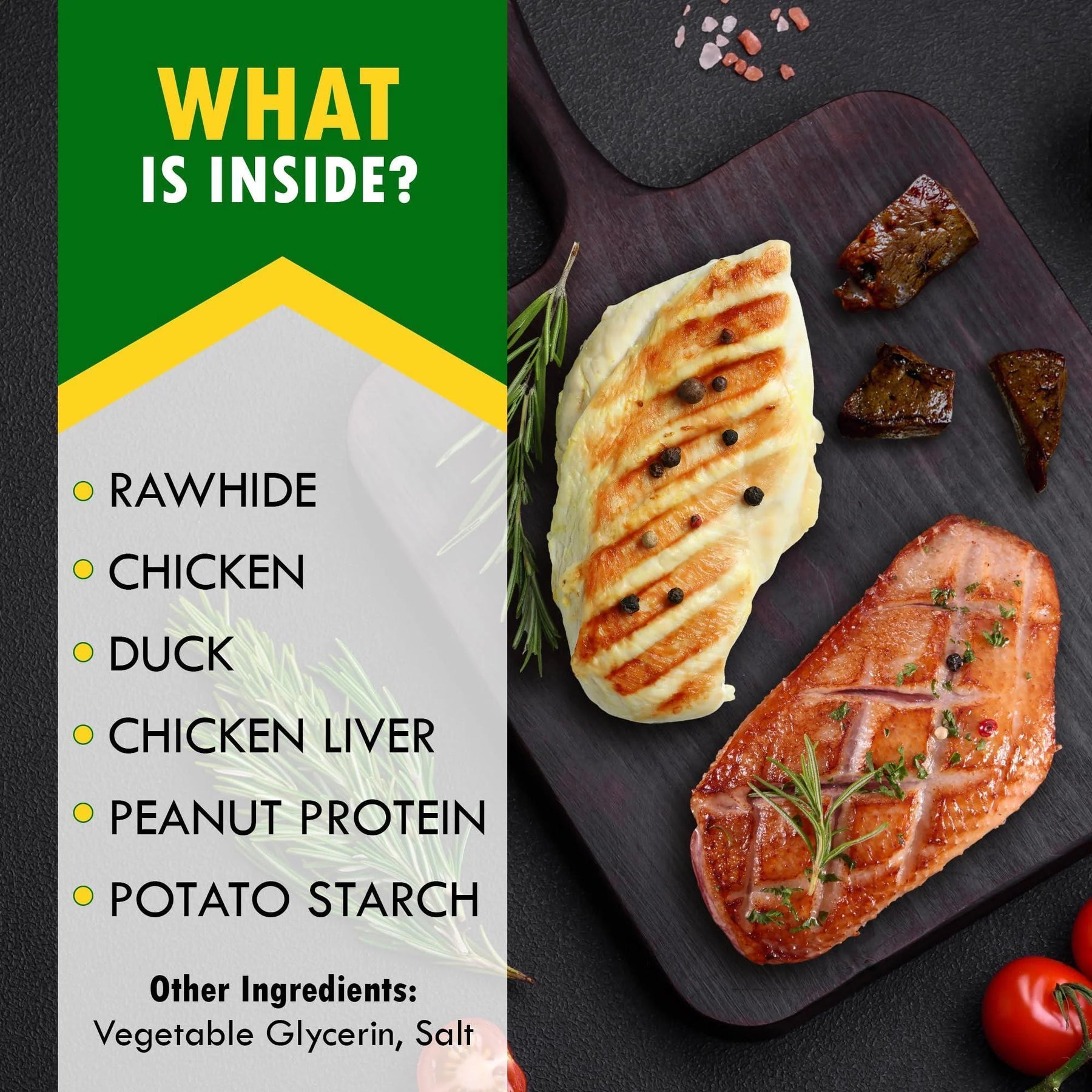 NOURISH WITH HIGH PROTEIN from ALL NATURAL CHICKEN & DUCK: Our kabob dog treats aren't just delicious they're packed with protein fatty acids to support your dog's skin, coat, and overall health. Say goodbye to dull coats and hello to shiny, healthy fur with every satisfying chew. Give your pup the nutritious reward they deserve while keeping their skin and coat looking their best.