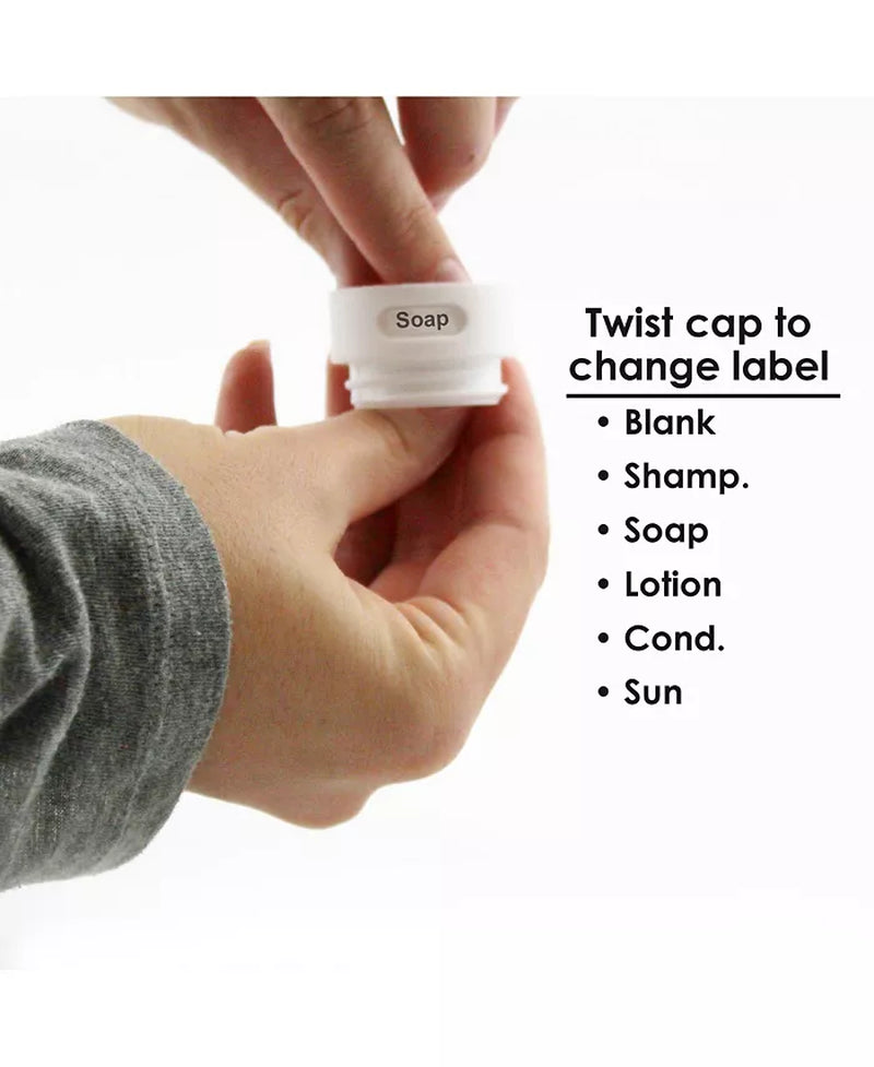 These 3 oz. Travel Buddiez are TSA approved and durable food-grade silicone, perfect for a quick plane trip or trip to the store! The twist on cap can be customized by spinning the ring to read: Shamp., Cond., Sun, Lotion, Soap and blank for customizing and easily staying organized.